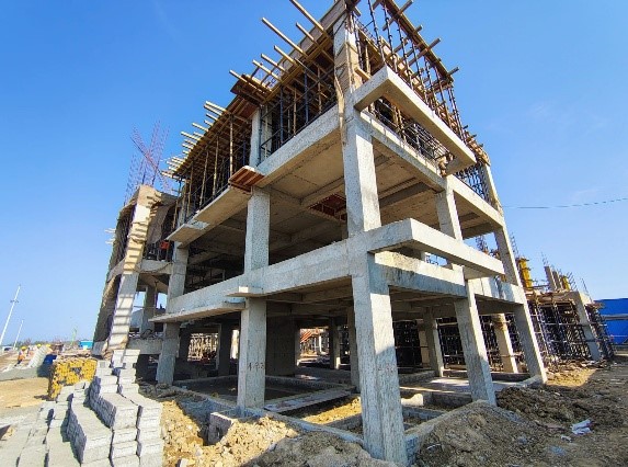 Construction of a R.C.C frame structure for a high-rise residential project, adhering to modern engineering standards.